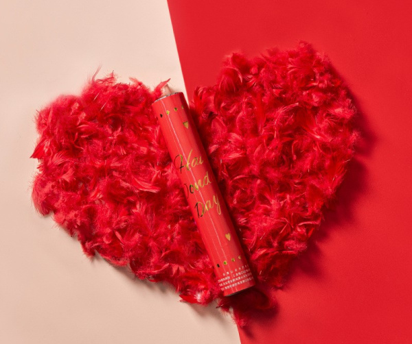 Пневмохлопушка, Конфетти перья, Красный, 28 см, 1 шт.