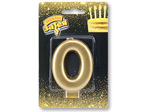 Свеча -цифра "0" Золотая 8см/V